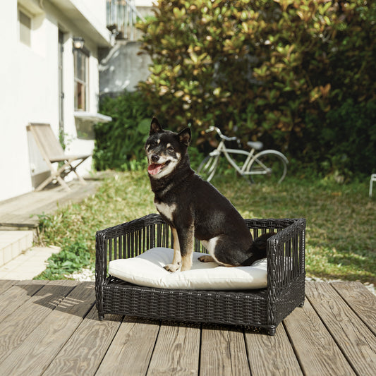 DESIGN: Featuring a lavish light brown wicker weaving effect , this indoor rectangular pet bed or sofa lounger is suitable for cats and small dogs up to 30kg and provides them with a comfortable place to rest and sleep.